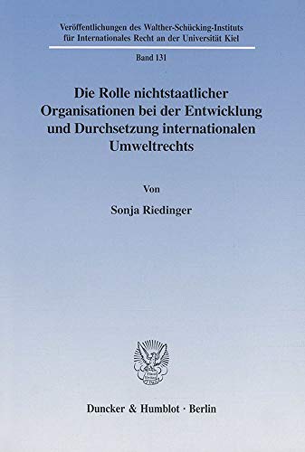 Die Rolle nichtstaatlicher Organisationen bei der Entwicklung und Durchsetzung internationalen Umweltrechts / von Sonja Riedinger by Series: Walter-Schücking-Institut für Internationales Recht Veröffentlichungen des Walther-Schücking-Instituts für Internationales Recht an der Universität Kiel ; 131