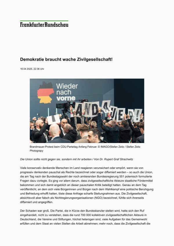 Demokratie braucht wache Zivilgesellschaft! / Rupert Graf Strachwitz. by
