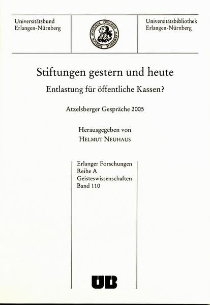 Stiftungen gestern und heute : Entlastung für öffentliche Kassen? ; Atzelsberger Gespräche 2005 / hrsg. von Helmut Neuhaus by Series: Erlanger Forschungen / A ; 110